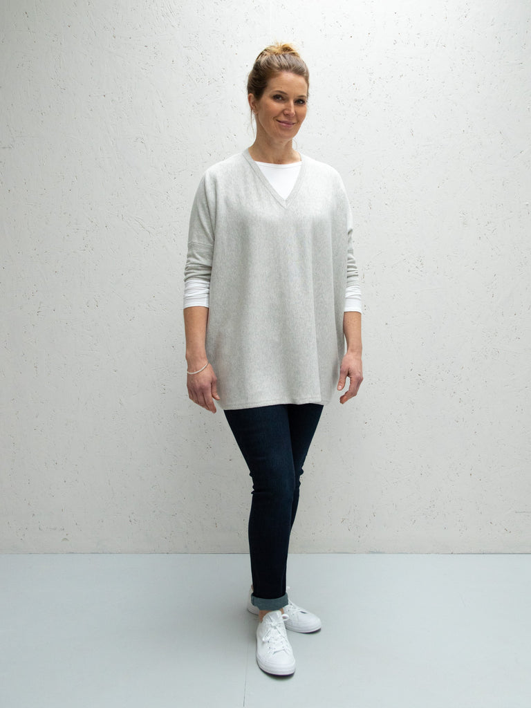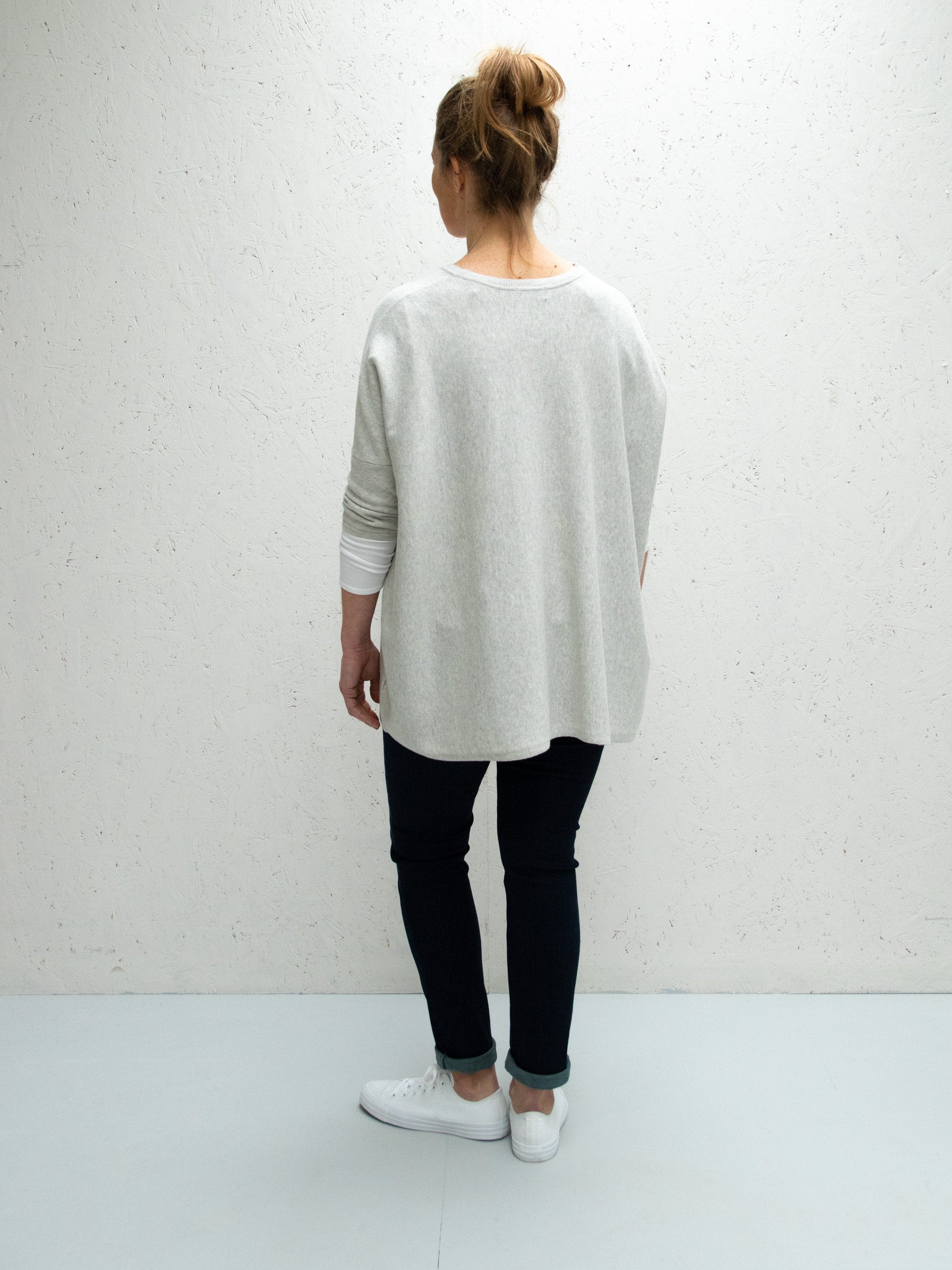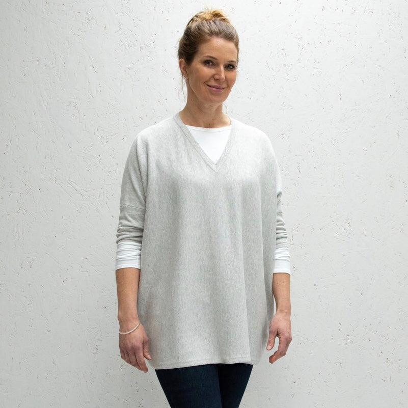 Clara v-neck cotton knit with elbow length sleeve, loose square shape great for any body shape. Perfect worn over our Tasha top with jeans.